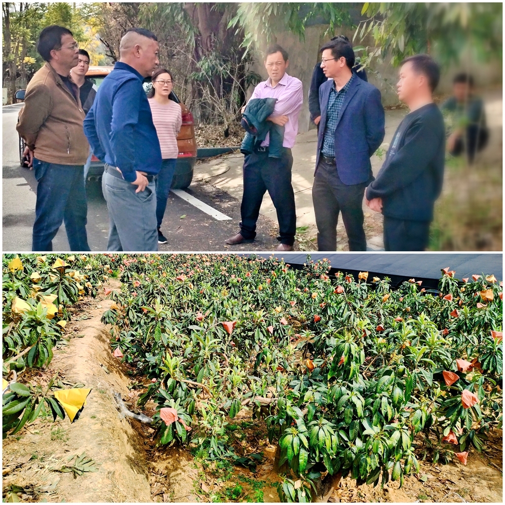 考察组一行先后前往攀枝花市米易县丙谷镇米易枇杷生态产业园、米易县康健惠民果蔬种植合作社、米易县丙谷镇芭蕉箐村枇杷种植基地、米易县幸福家庭农场等地考察学习枇杷栽培管理技术、产业农文旅融合、品牌宣传、产销统计监测、新品种及配套技术,与当地政府和企业负责人座谈交流。