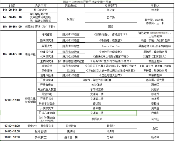 附一:武定一中2024年校园开放日体验课程一览表