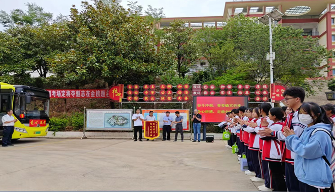 2023年高考圆满结束,为感谢武定县恒通公交有限公司在本次高考中对我校考生的爱心送考服务,武定县招生考试委员会于6月9日在学校举行2023年高考送考锦旗赠送仪式。县人民政府副县长周学强,县教育工委书记、教育体育局局长何毓才,楚雄太阳女集团公司副经理杨应雄,武定县恒通公交有限公司经理张成彪,民族中学校长王永春,恒通公交公司司机以及高三年级三校生班全体学生参加了赠锦旗仪式。