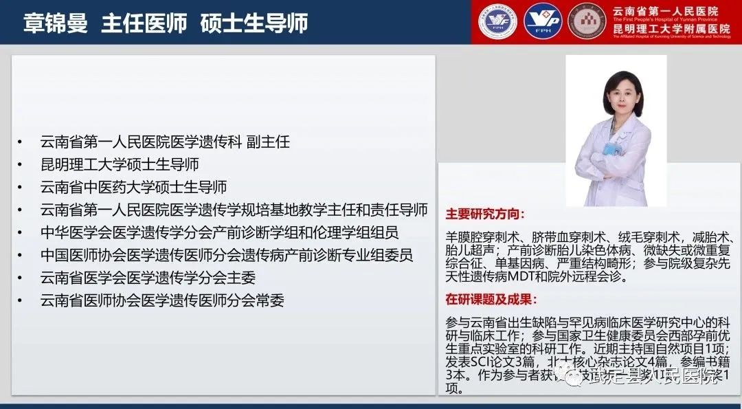 为帮助更多家庭正确认识出生缺陷,远离出生缺陷,云南省第一人民医院医学遗传科主任、博士生导师朱宝生,云南省第一人民医院医学遗传科副主任、硕士生导师章锦曼,应邀到武定县人民医院为广大家庭尤其产前筛查高危人群、面临优生遗传困惑的家庭提供科学合理的治疗方案和遗传咨询,让广大患者在“家门口”就能享受到名医名家的诊疗服务。