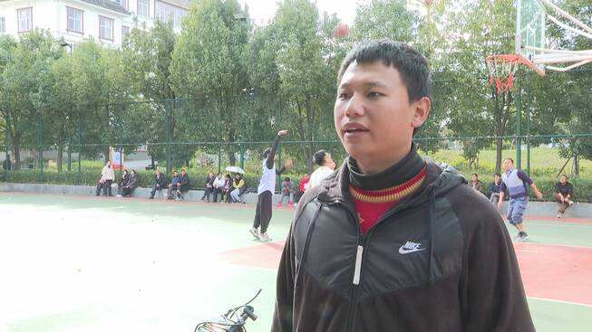 运动会项目以益智、趣味为主,设三人篮球、定点篮球、乒乓球、羽毛球、棋牌、飞镖比赛和团队同舟共济、四人五足、搬运篮球、6人接力、蒙眼喂香蕉等11个项目。其中,最引人注目的当属四人五足比赛,赛前每组参赛人员各一条腿用布带捆缚在一起,以站立方式起跑,当哨声响起后,四名选手同时起跑,他们有跳有跑,有的跑快,有的跑慢,导致不时摔倒,趣味横生的比赛引得场外观众哈哈大笑。在搬运篮球游戏项目中,两人为一组,背对背将篮球夹在中间,再以“螃蟹步”在起点和终点跑上一个来回,有的队伍篮球掉了、有的队伍步伐不一致,被队友拖着走,欢笑声此起彼伏,呐喊声响亮激昂。