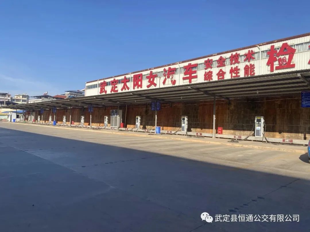 武定太阳女新能源汽车充电站位于永武高速路口旁武定客运站内,设立快充直流充电桩21台,共42把枪,每枪单体输出最大电压800V、每枪单体输出最大电流250A;同时设立慢充交流充电桩15台,共15把枪,每枪单体输出电压220V,输出电流32A,可涵盖市面上多种符合国际标准接口的新能源电动汽车的补电需求。