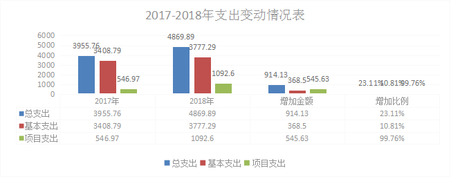 3、总支出增加是由基本支出和项目支出的增加而增加。