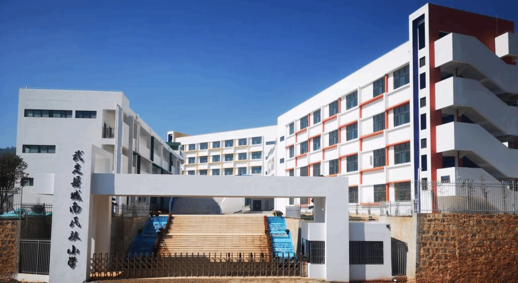 武定县城南民族小学是一所环境优美,配套设施齐全的现代化小学,学校位于武定县城以南,县民族中学对面鲍家村旁。学校占地面积50.64亩,估计总投资10455.25万元,于2022年正式落成。学校规划设办30个教学班1350人(最大容量1800人),目前开设8个教学班,共有学生293人,教职工19人,后勤11人,其中保安4人。