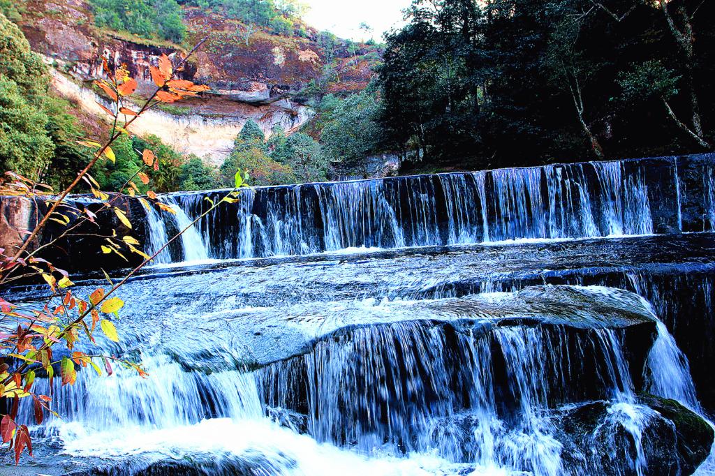 一路到了水城河。水城河的秋,宁静中不乏喧嚣,奔放中不乏拘谨。清澈见底的河水缓缓流淌,河床如人工雕琢过一般,全是天生平整的大石板,河床上多年生成的青苔,顺着水势,扭动腰肢,轻盈舞动,让人产生无尽的遐思。在这里,您绝对可以找到回归大自然的感觉。