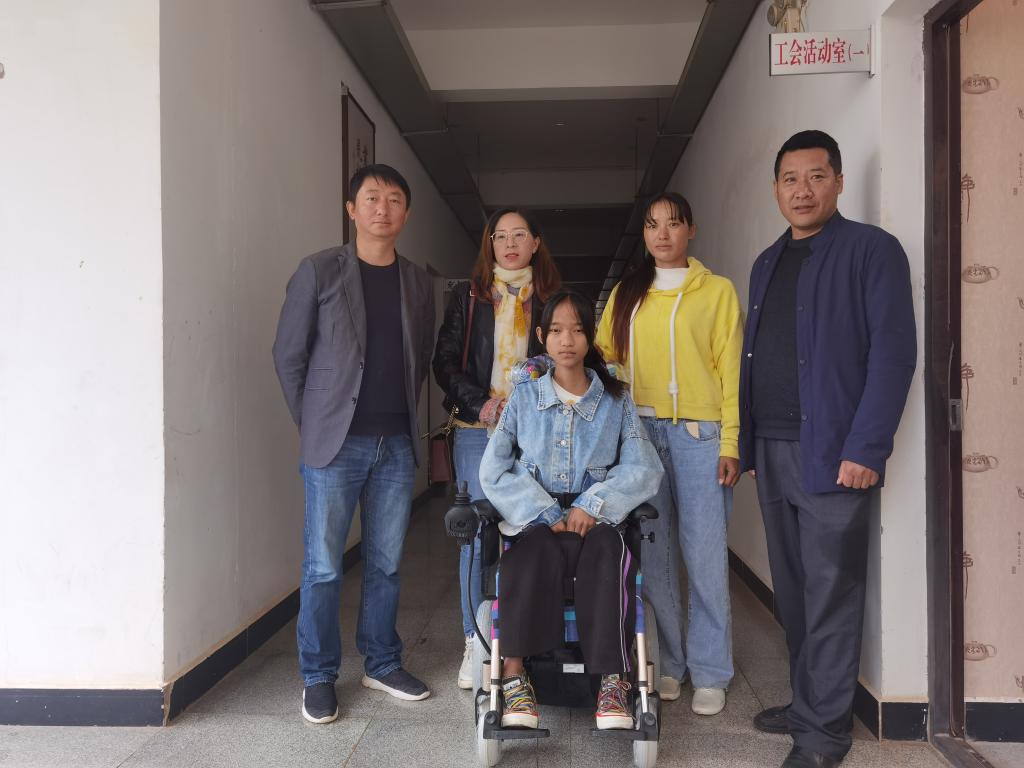 2020年11月2日下午,招商银行联合武定县残疾人联合会为猫街中学八年级残疾学生送来近万元的适配电动轮椅。