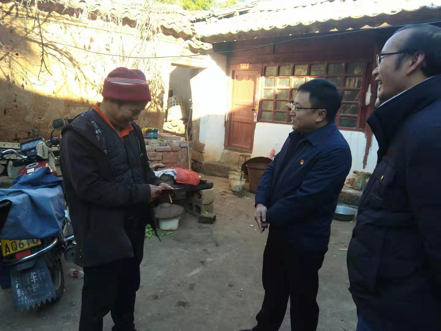 随后到唐家永泉村看望慰问困难群众谷春红、困难党员谷存芳、原村委会老大队干部谷存金。窦小军走进他们家中,查看住房是否有安全隐患、询问生产生活是否有困难,坐下来与他们亲切交流,为他们送上新春的祝福。鼓励大家树立积极乐观的生活态度和战胜困难的信心,做好春耕生产的准备,发扬艰苦奋斗、自力更生的优良作风。同时,要求党员同志和原老大队干部要做好表率,支持好村上各项工作。他嘱咐随行人员要经常走访探望他们,切实关注他们的身体和生活状况,努力为他们排忧解难,切实为他们的生活提供保障。