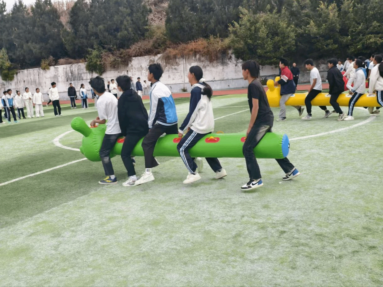 运动会当日,操场彩旗招展,全校师生共赴这场青春运动之约。开幕式上,各班方阵身着统一服饰,迈着整齐步伐、喊着嘹亮口号走过主席台,创意队形与昂扬面貌尽显少年蓬勃朝气。班级团体赛中,篮球操、广播操动作利落规范,三分钟跳绳银绳翻飞如弧,拔河赛场热血沸腾,队员奋力相持,拉拉队呐喊声震全场。趣味斗鸡活动热闹开赛,选手单脚角逐,灵活攻防引得欢呼不断。学生个人项目里,球类、短跑、仰卧起坐等赛事中,学子们拼尽全力突破自我。教师组拔河、手球、定点投篮等比赛同样亮眼,以行动为学生树立榜样,凝聚班级力量,拉近师生距离。