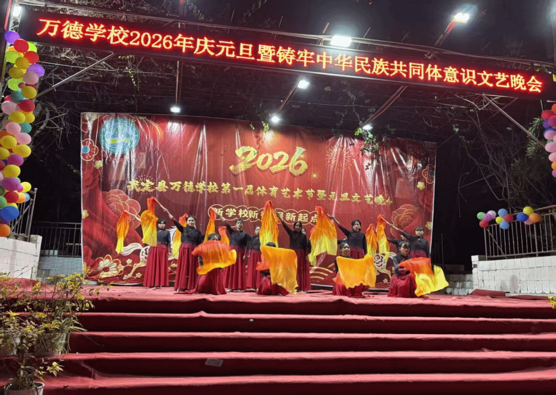 为丰富校园文化生活,增强师生身体素质,展现新时代青少年朝气蓬勃的精神风貌,12月30日,万德学校举办第一届体育艺术节暨元旦文艺晚会,全体师生及部分家长代表齐聚校园,以体育竞技与文艺表演相结合的形式,共同迎接2026年的到来。