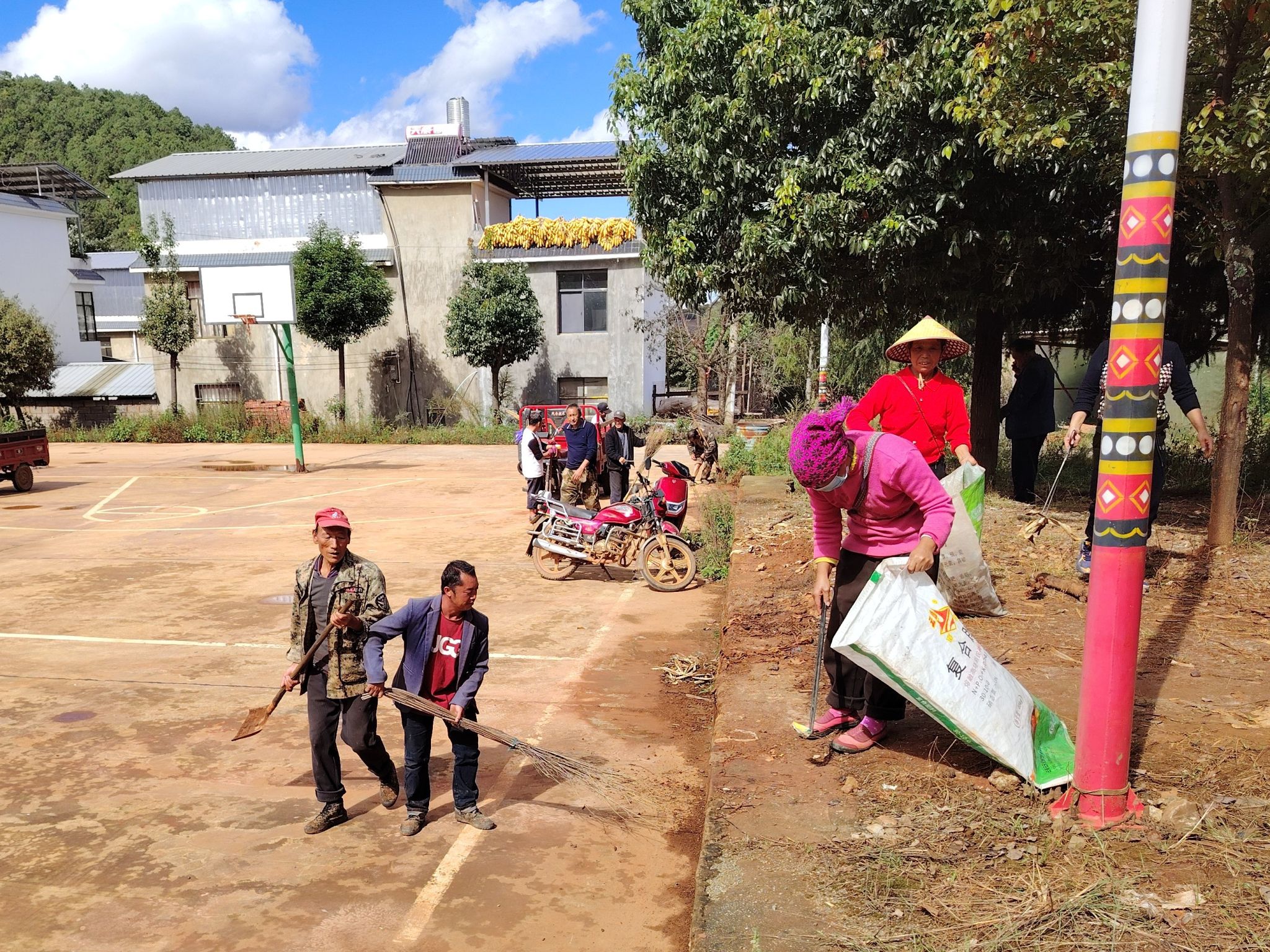 针对搬迁点垃圾堆积、杂物乱摆问题,村委会组织村“两委”干部、镇挂点工作队、党员志愿者及搬迁群众共60余人开展“清洁家园”行动。大家分组使用扫帚、铁铲等工具,对村内主干道、公共区域、房前屋后等重点部位清扫,清理生活垃圾、废弃杂物等,并引导村民养成规范堆放习惯。经两天集中清理,两个搬迁点共整治卫生死角30余处,清运垃圾12车约3.5吨,村内环境面貌显著改善。