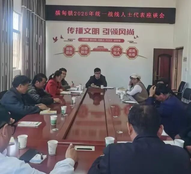 2026年1月19日,插甸镇召开2026年统一战线代表人士座谈会。镇党委书记杜彬彬出席会议并讲话,来自非公有制经济、宗教界、少数民族等领域的20余名统一战线代表人士参加会议。