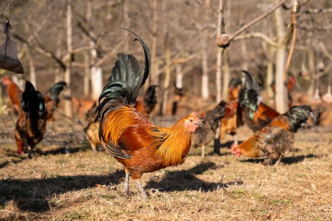 走进位于插甸镇长冲村的云南首羽农业发展有限公司,青山密林间,一群群羽毛油亮、体格健硕的武定鸡正悠闲踱步,它们啄食着林间的草籽、昆虫,喝着清澈的山泉水,清脆的鸡鸣声与林间的鸟语风声交织成一幅生动的生态画卷。这里不仅是武定鸡的天然生长乐园,更是当地群众增收致富的重要阵地。