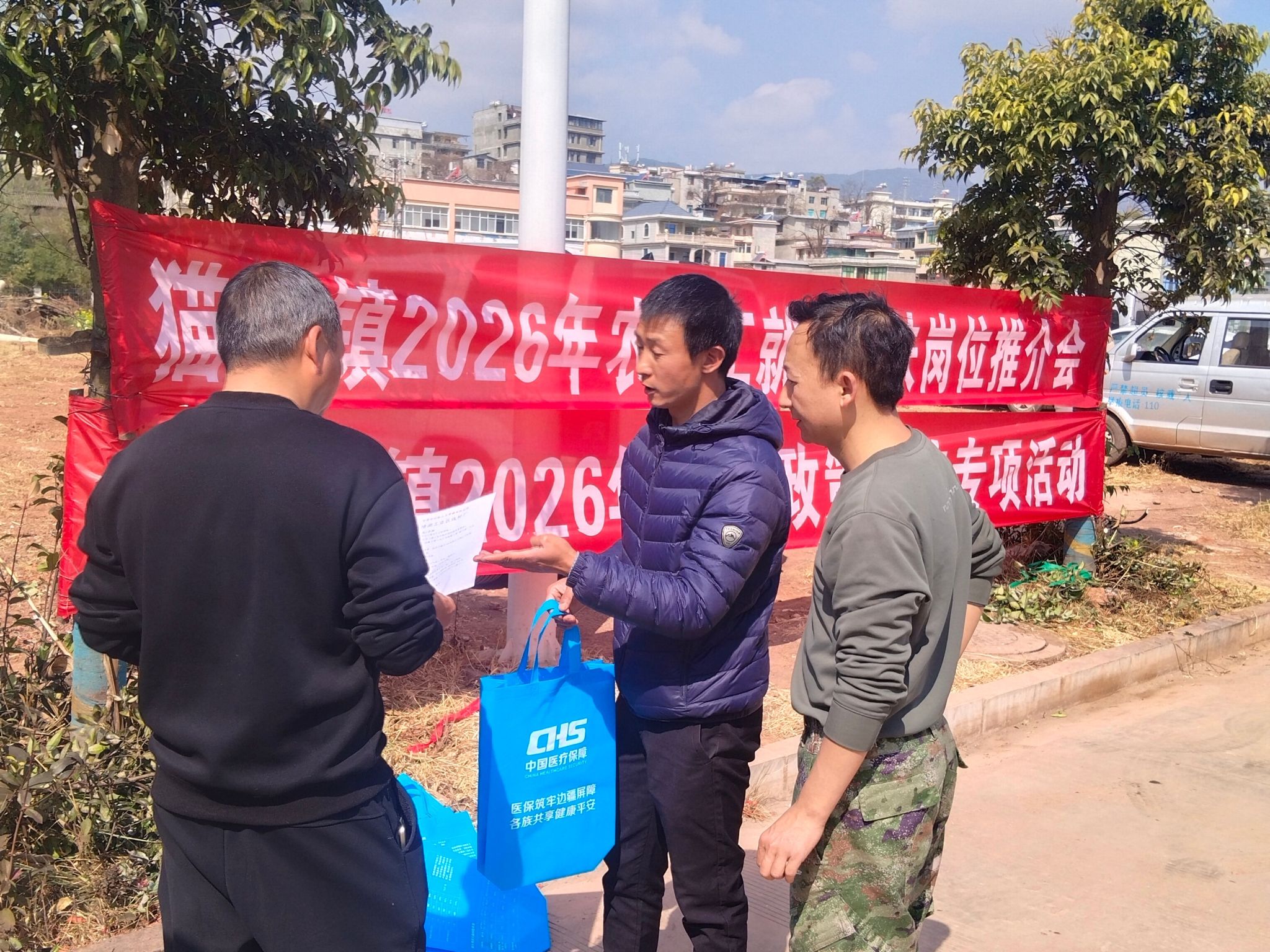 活动现场,猫街镇党群服务中心干部职工化身“政策宣传员”“就业服务员”,主动走进群众、贴近群众,以民俗盛会为纽带,将党的温暖与民生关怀传递到千家万户。工作人员设立政策咨询服务台,悬挂主题宣传横幅、摆放政策宣传展板,向来往赶街群众发放医保参保、养老保险缴费、农民工权益保障、就业岗位信息等各类宣传资料,用通俗易懂的“家常话”,解读政策要点、办理流程,面对面为群众答疑解惑。