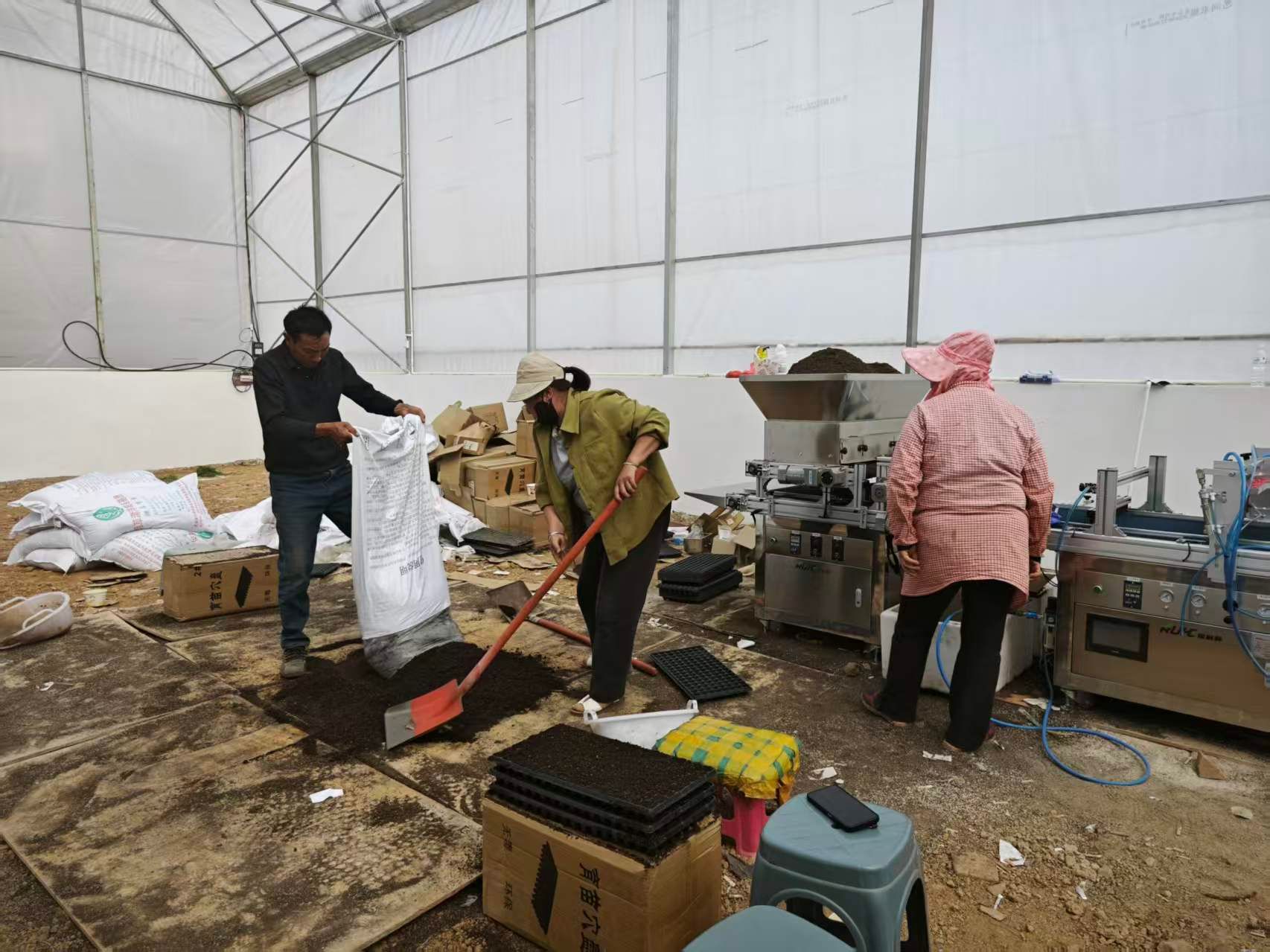 云南斌臻商贸有限公司育苗基地内,全自动悬盘播种机高效运转,工人们熟练完成装土、打塘、点籽、覆土等工序,一派繁忙有序的育苗景象。基地负责人表示,今年已培育番茄、辣椒、西葫芦、莴笋、甘蓝等优质蔬菜苗200余万株,首批菜苗已被抢购并完成移栽,番茄、无筋豆苗供不应求,当前第二批菜苗培育工作正有序开展。