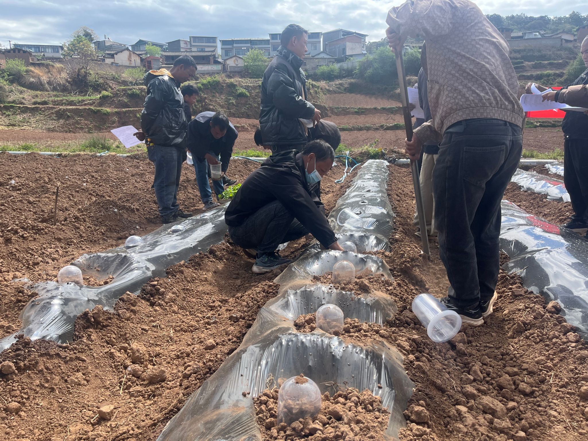 岔河村委会各蔬菜种植基地迎来首批移栽高峰。村民们趁着晴好天气,翻耕土地、移栽菜苗、覆盖地膜、浇灌定根水,辣椒、甘蓝移栽与无筋豆、番茄搭架同步进行。“开春风大太阳辣,土干得快,盖了膜就能把水汽锁住,杂草也长不起来,苗才活得好。”一位正在移栽无筋豆的农户说道。无筋豆、甘蓝等蔬菜生长周期短,夏季采收后可复种第二茬,实现“一地两收”,极大调动了农户种植积极性。