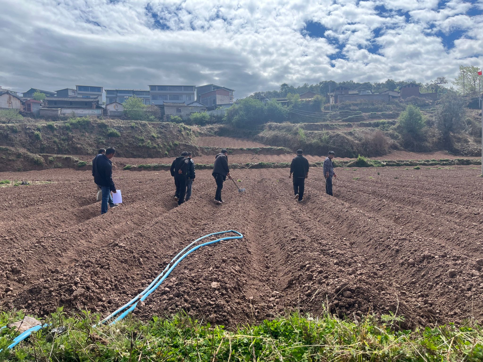 在毕家村委会黑箐村刘绍春的番茄种植基地,工人们正忙着焊接大棚钢架,旋耕机在一旁来回穿梭翻耕土地,各项工作分工有序、稳步推进。刘绍春介绍,去年15亩番茄产量高、销路好,今年他又流转8亩土地,计划扩大种植规模。目前土地平整接近尾声,大棚搭建即将完工,预计5月中旬可完成20余亩番茄苗移栽。