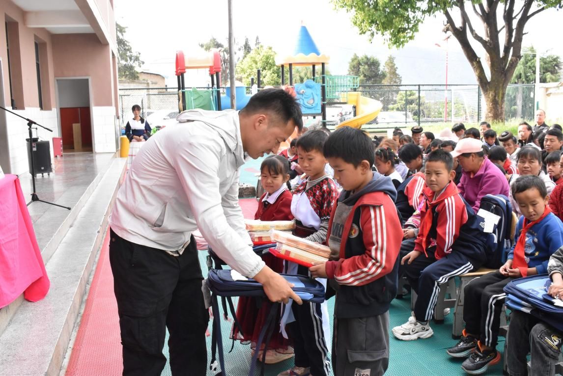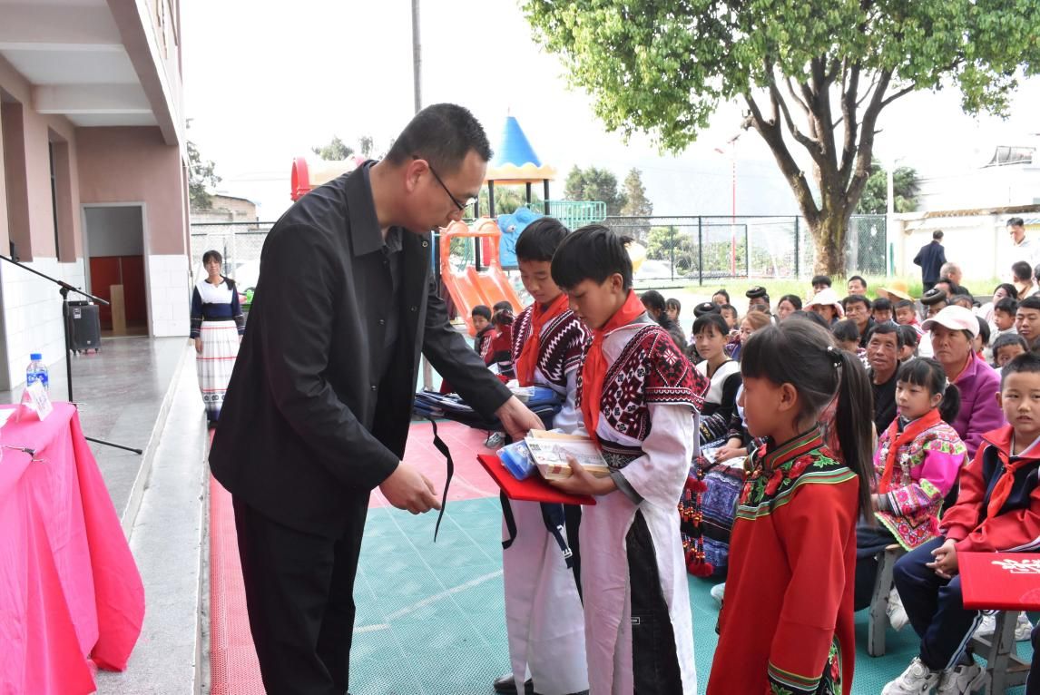 活动现场暖意融融,工作人员还为受表彰学生及现场学生送上了书包、文具盒、练习本等文具,把温暖与关怀精准送到孩子们的心坎上,让孩子们在关爱中收获成长、在激励中奋勇前行。获得“双科优秀奖”的二年级学生杨龙辉激动地说:“今天我得了奖,让我觉得自己的努力没有白费,老师看到了我的进步,我的爸爸也获得了奖状,我们都很开心,今后我一定会更加努力学习,争取取得更大的进步。”