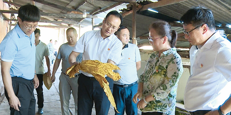 州委副书记、州长迟中华在环州乡小荒田村烤烟集中烘烤点调研烟叶采收及烘烤工作