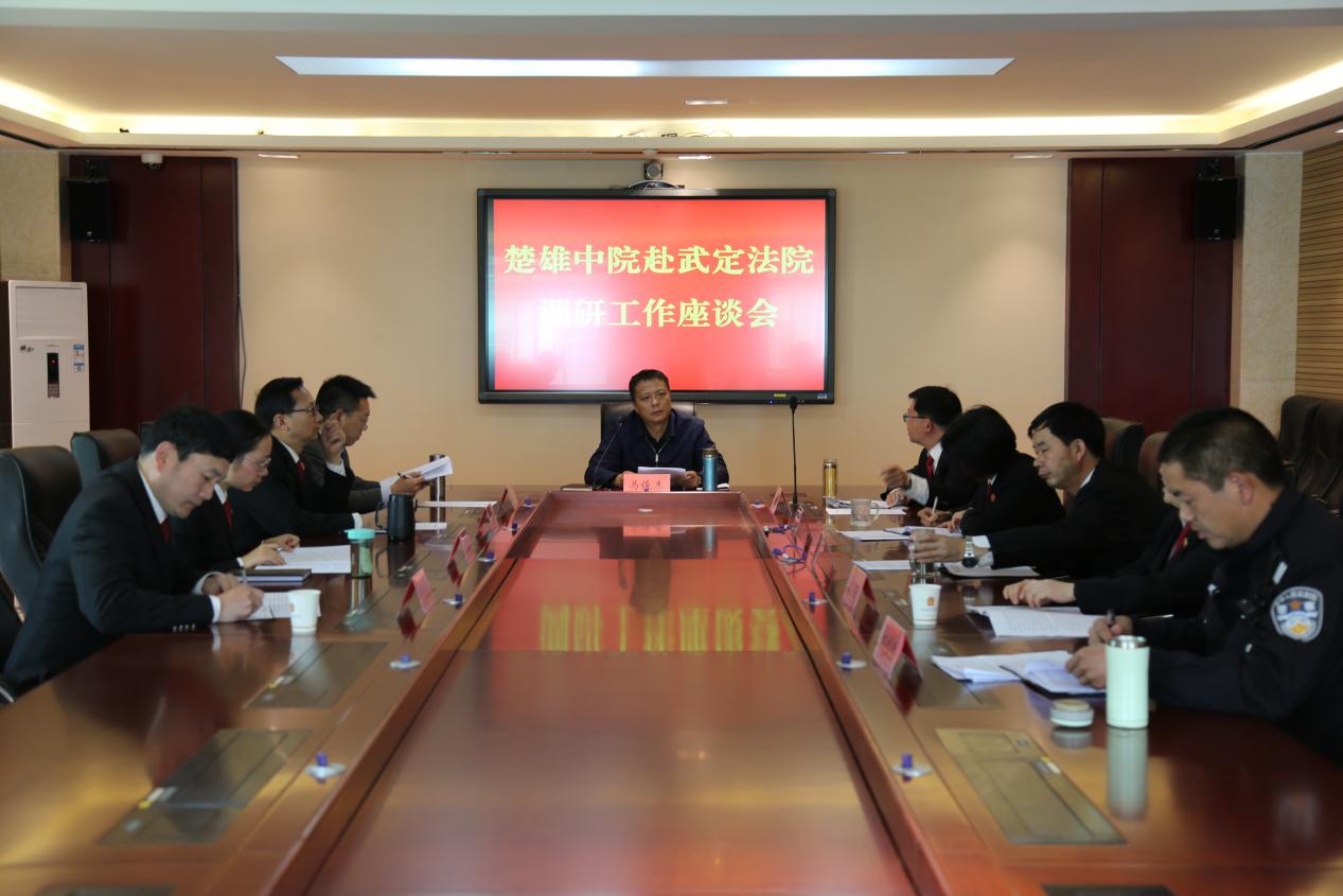 2019年3月11日,楚雄州中院马俊杰院长到武定县法院开展调研并召开座谈会议。本次调研以基层法院全面从严治党、扫黑除恶、“干在实处,走在前列”大比拼、执行攻坚长效机制建设、防范化解各类风险以及多元化解纠纷解决机制建设工作情况为重点,并与武定法院中层以上干部进行交流座谈。