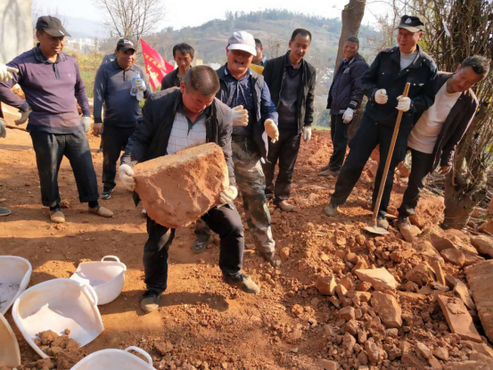 “感谢党委政府!有了你们的帮忙,我就能住上新房子了。”狮山镇西和村委会吉家村贫困户廖桂军向前来帮助的挂包帮单位武定县残联,狮山镇党委政府,西和村委会党员干部和村民小组长等32人连声道谢!为了加快CD级危房改造推进工作,今天,头顶着炎热的太阳,32人拿着铁镐,锄头和铁铲等劳动工具来到廖桂军家,为他的CD级危房拆除重建工程,做好前期的平整土地准备工作,让廖桂军一家能尽快住上新房,挂包帮单位、责任区领导和村委会党总支出主意,想办法,施工方人手不够,村党总支负责找人,没有资金垫付材料费,聂副镇长想办法借,为了加快建房进度,最大限度节约资金,今天来平整土地后,明天施工方就动工建房。