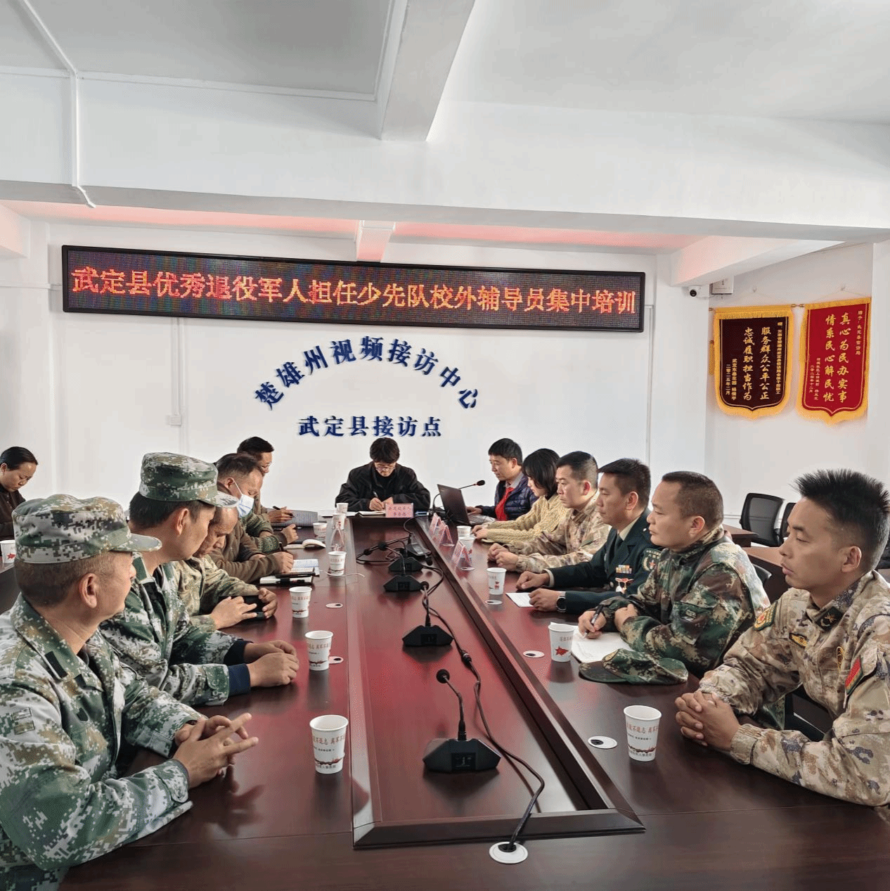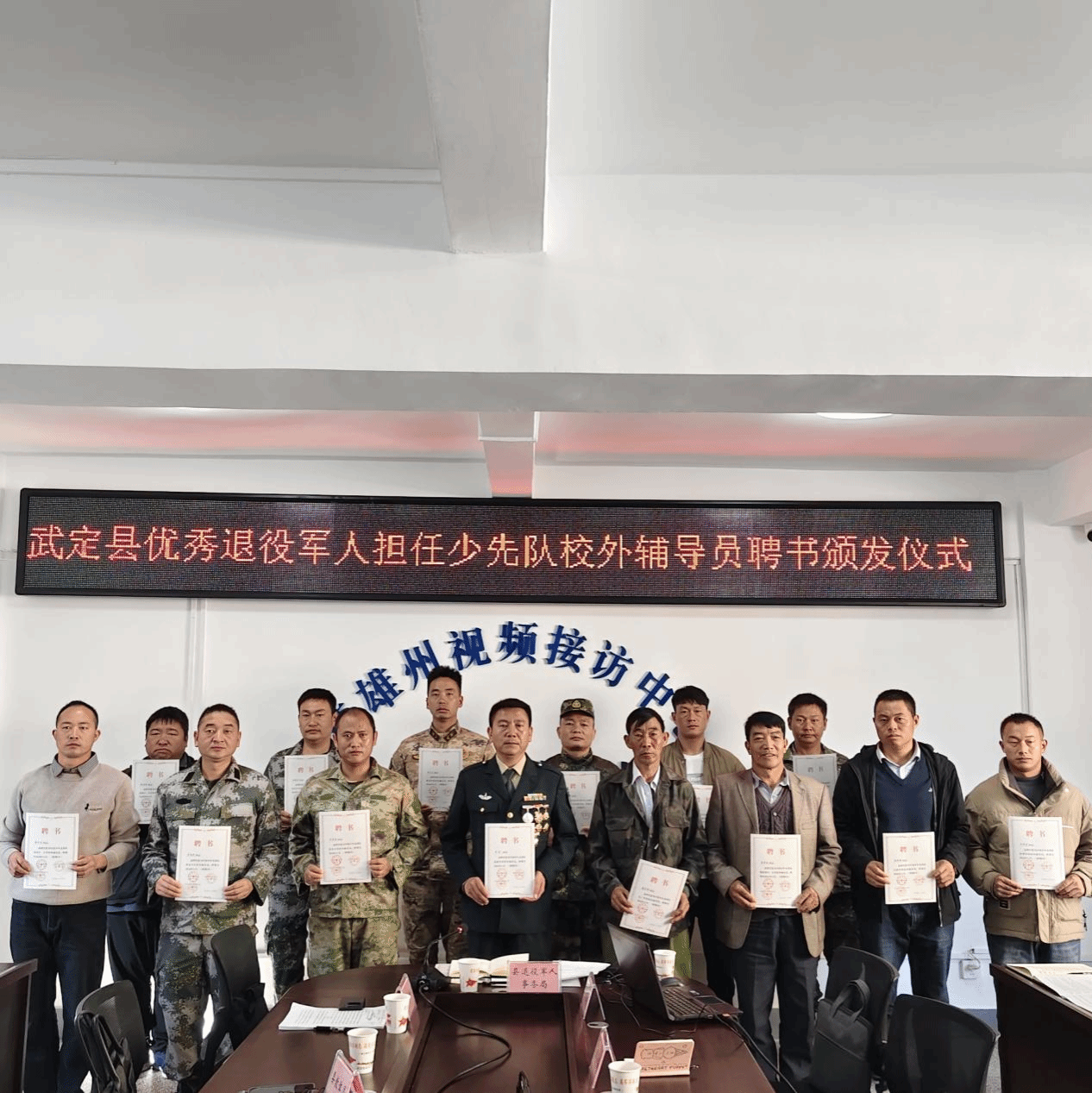 11月28日下午,武定县以“会议培训+实操观摩”相结合的形式,隆重举行优秀退役军人担任少先队校外辅导员集中培训、颁发聘书、首场宣讲暨工作启动仪式,开启武定县青少年红色教育新篇章。