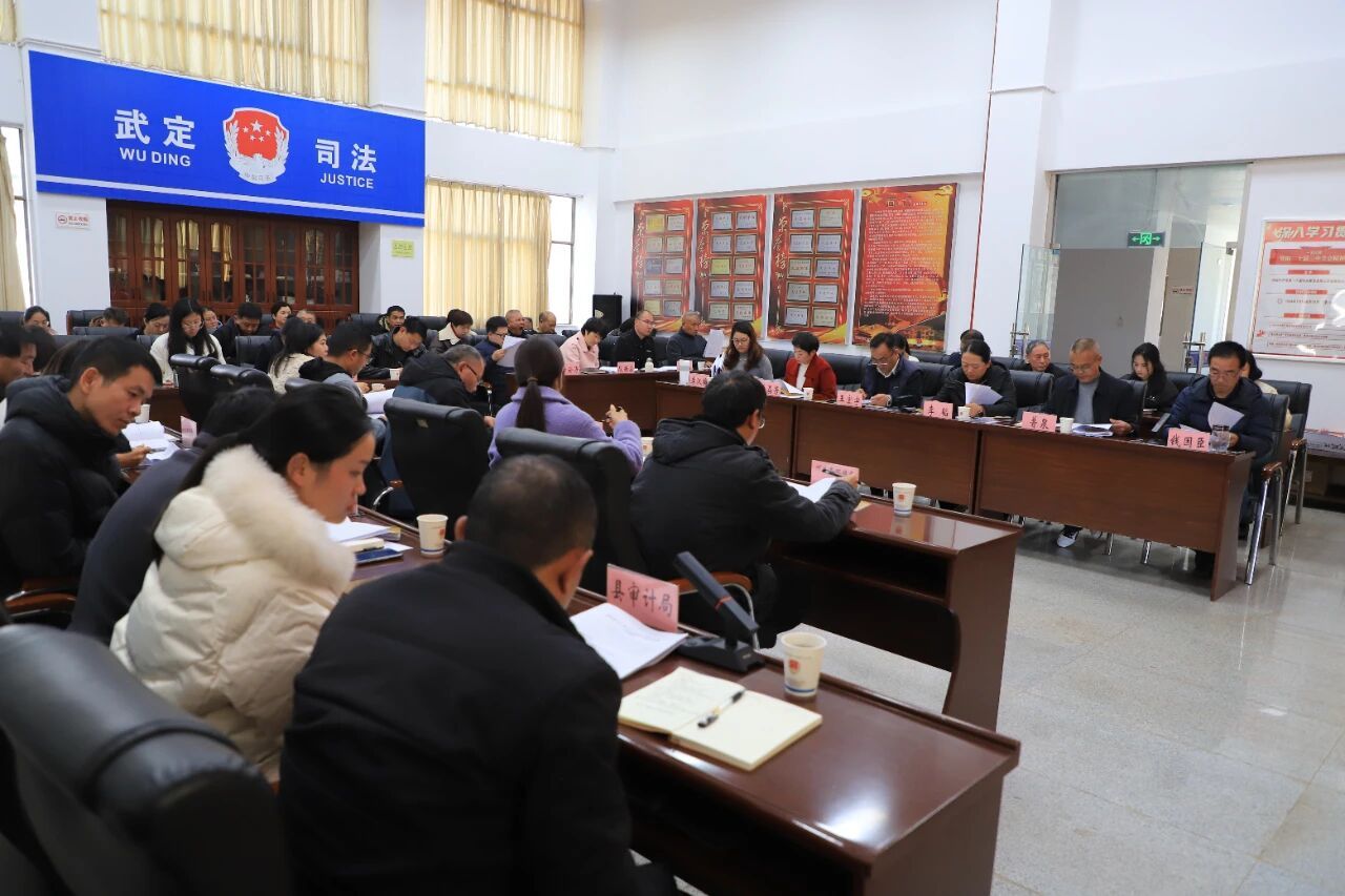 12月2日下午,在县司法局党组书记、局长的带领下,宪法宣誓活动正在此进行。该次会议以县人大、政协、县委宣传部、县级部分执法单位、群团组织、政法干警、新闻媒体记者、律师等各方代表、县委普法与依法治理工作领导小组成员,以及县司法局全体干部职工约80人共同参加了“武定县2025年‘宪法宣传周’启动仪式”。