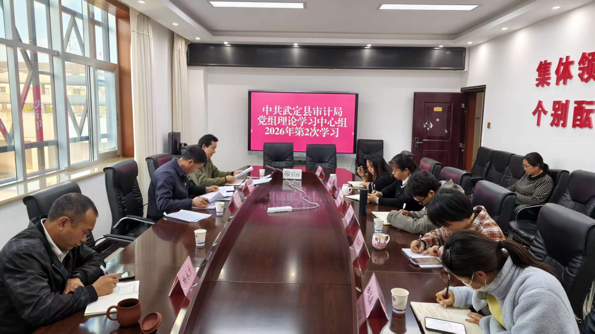3月24日,武定县审计局党组理论学习中心组举行2026年第2次集中学习。局党组书记、局长潘有观主持并讲话。