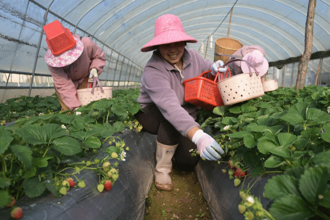 当万物进入冬藏时节,武定县高桥镇花桥村的冬日限定甜蜜却刚刚揭开面纱。近日,该村规模达600亩的草莓种植基地已陆续披上红妆,正式迎来了丰收季。一颗颗红艳欲滴的草莓掩映在绿叶之下,散发着诱人的甜香,吸引了众多游客前来体验采摘的乐趣,品尝这“第一口”的冬日甜蜜。