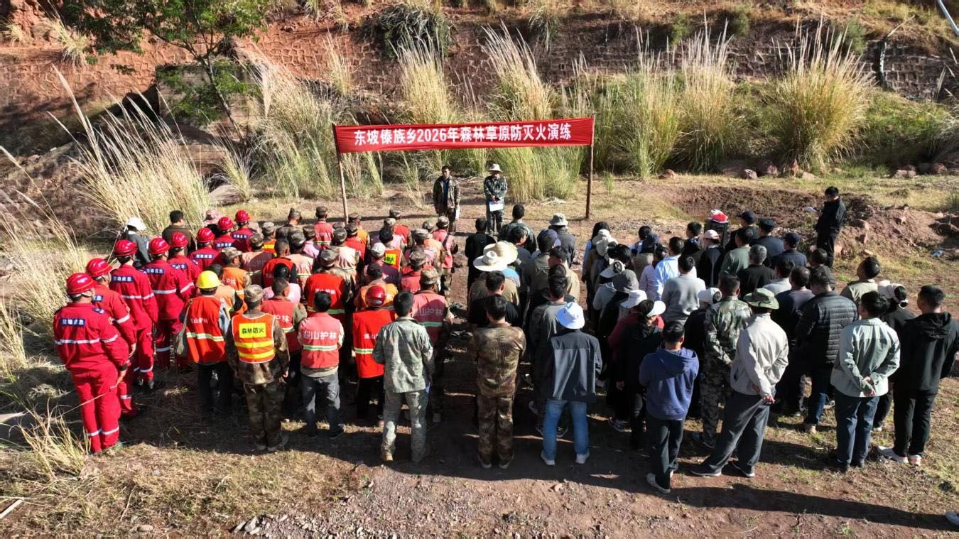 为全面提升森林草原火灾综合防控和应急处置能力,扎实做好2026年度森林草原防火工作,2026年1月29日下午,东坡傣族乡组织开展2026年度森林草原防灭火应急演练。乡党政班子成员、全体干部职工、乡应急救援队、8个村党总支书记、卫生院、派出所、护林员等90余人参加演练。