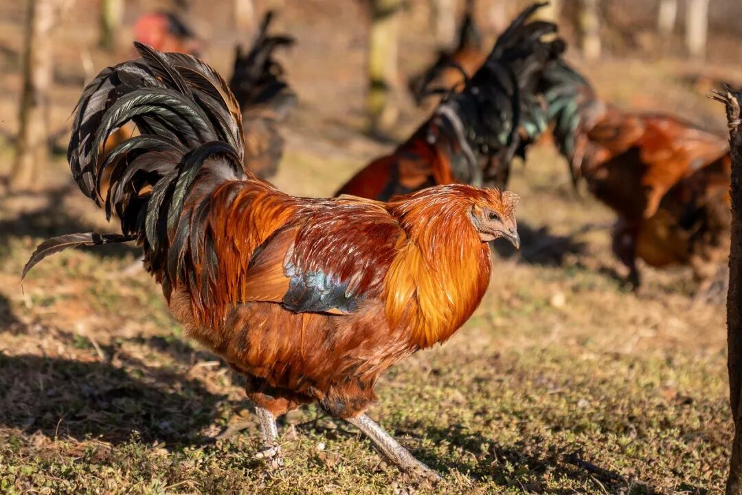 走进位于插甸镇长冲村的云南首羽农业发展有限公司,青山密林间,一群群羽毛油亮、体格健硕的武定鸡正悠闲踱步,它们啄食着林间的草籽、昆虫,喝着清澈的山泉水,清脆的鸡鸣声与林间的鸟语风声交织成一幅生动的生态画卷。这里不仅是武定鸡的天然生长乐园,更是当地群众增收致富的重要阵地。