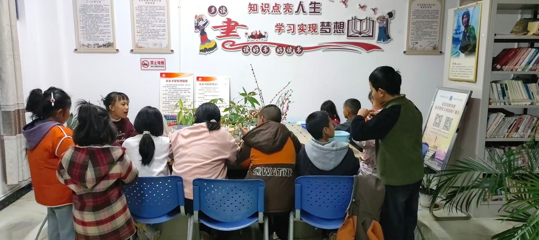 阳春三月,走进环州乡农家书屋,阵阵书香扑面而来。书架上,农业技术、健康养生、少儿读物、政策法规等各类书籍分门别类、整齐摆放。几名趁着假期来书屋的孩子围坐在书桌前,或埋头写作业,或翻阅绘本,书屋里安静而温馨。