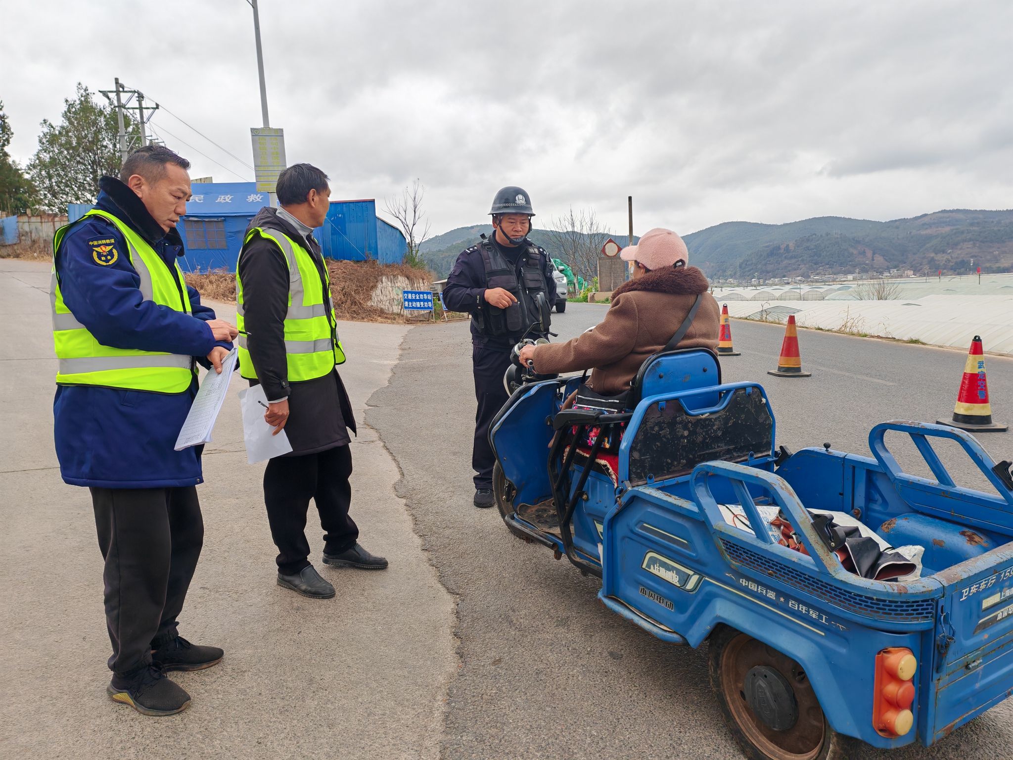 每个劝导点由镇干部、村委会志愿者、派出所民警三方共同值守,对未戴头盔者要求取来或购买头盔正确佩戴后放行,对三轮车载人者责令卸下乘车人员消除违法状态后放行。创新“角色互换”体验式教育,对于经劝导仍认识不深的驾驶人,邀请其穿上交通劝导反光背心,在劝导员指导下亲自参与对下一个违规驾驶人的劝导工作。“换位体验”让违规者通过付出时间成本、亲身参与管理,深刻认识到遵守规则的重要性,起到了比单纯罚款更深刻的教育效果。