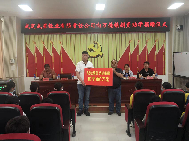 活动现场,武星钛业有限责任公司向万德镇捐赠助学金6万元,镇党委书记古建辉代表万德镇接受了捐赠,并由参会领导现场向中小学学生代表40人发放了助学金。