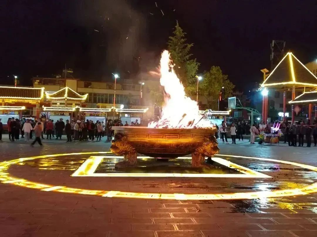桃花俏,人欢闹。夜晚到来,人们围着篝火、踩着欢快的音乐节点一起跌脚、打跳,活动进入高潮。
