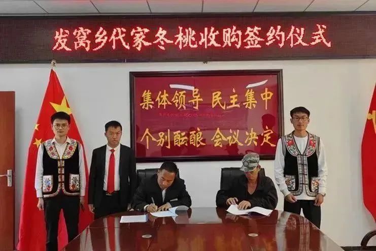 “在乡党委政府精心谋划下,我们全村种植冬桃500余亩,不仅发展旅游赏花、通过线下营销、直播带货,还积极推荐企业与我们签订冬桃收购协议,大家的日子真是越过越红火。”发窝乡代家村村民小组长代自忠在发窝乡2024年冬桃收购协议签订仪式激动地说到。