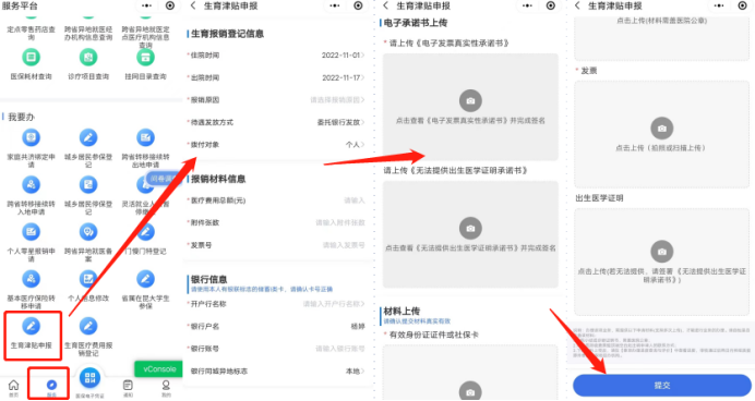 参保人通过该功能为本人办理生育医疗费用报销登记。