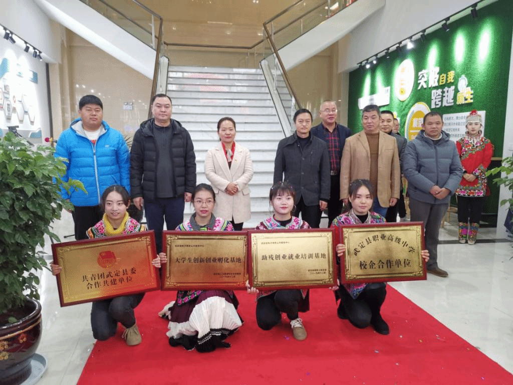 启动运营揭牌仪式上,共青团武定县委、县人力资源和社会保障局、县残疾人联合会、县职业高级中学分别与电子商务公共服务中心举行联合共建授牌仪式。